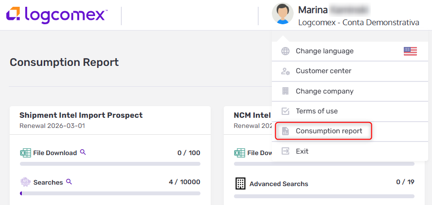 To monitor your plan usage (number of searches performed, Excel downloads, or API requests), follow this path: