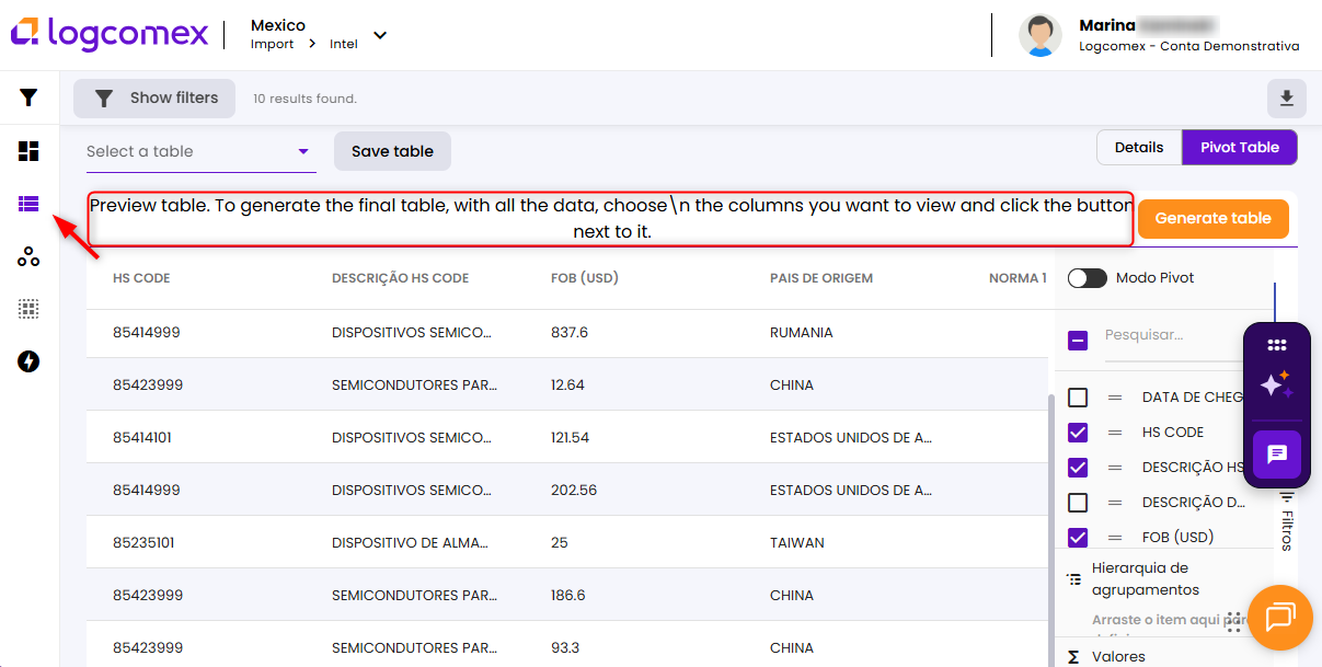 How to set up and use the Pivot Table in Import México?