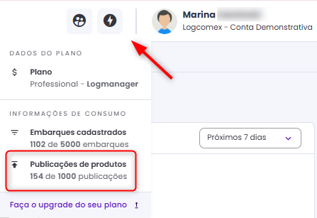 Como acompanho meu consumo de franquia (publicações) no produto Catálogo de Produtos?