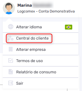 Clique no seu nome no canto superior direito da tela e selecione a opção Central do Cliente. No menu esquerdo, clique na opção Planos e Produtos e então clique na flecha do lado direito no produto NCM Intel.
