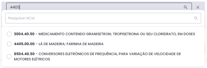 Digite o número da NCM, selecione-a e clique em Continuar. Depois disso, um modal será aberto solicitando a confirmação da troca, clique em Confirmar para finalizar.