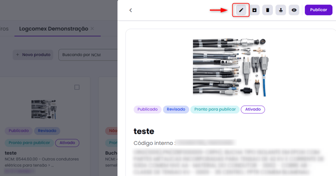 - Publique o produto novamente para que as alterações sejam enviadas ao Portal Único Siscomex e uma nova versão seja gerada.