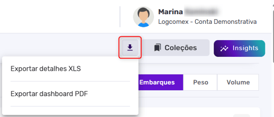Shipment Intel | Como faço a exportação de um arquivo excel ou PDF?