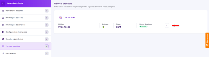 2) No menu esquerdo, clique em Planos e Produtos e selecione a seta ao lado do produto NCM Intel.