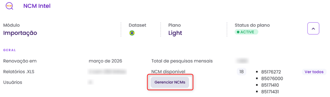 3) Clique em Gerenciar NCMs.