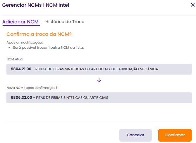 Como faço a troca de uma NCM no meu plano?