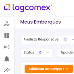 Ao logar no produto, você será direcionado para a aba Workspace. No bloco de Embarques em andamento, clique em Meus embarques e então em Adicionar embarque.