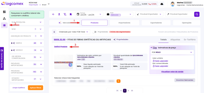 - Utilize esse subfiltro para definir o produto exato a ser analisado;