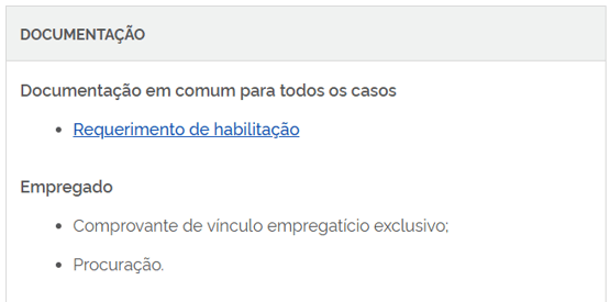 Neste site da lista de documentos, você deverá identificar qual o seu tipo de serviço/função prestado para entendimento de quais documentos são necessários para abertura do processo digital no E-CAC. Por exemplo: nos casos de empregado, você deverá seguir a lista de documentos desse tipo de função, conforme o site acima - vide print do exemplo abaixo.